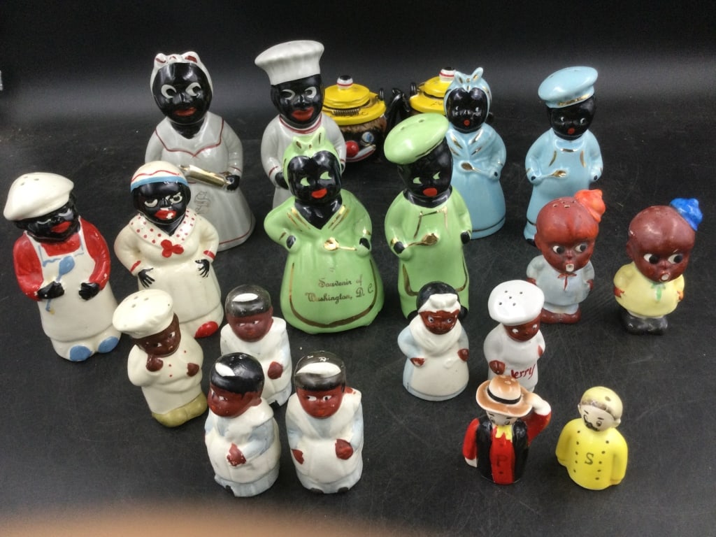 VINTAGE AUNT JEMIMA SALT & PEPPER SHAKERS LOT OF 4Feb 15, 2026Lot of Vintage World DollsFeb 11, 2026A composed lot of 11 variously marked porcelain figurinesFeb 24, 2026Serafin Marsal 1862-1956 Pottery Figurines 3pc LOTFeb 11, 2026Painted Figurines w/ Lefton, Aroco, Homco5 days LeftLot of Six Antique Ceramic Tobacco Jars, Late 19th - Early 20th C.Feb 15, 2026Lot of Six Antique Ceramic Tobacco Jars, Late 19th - Early 20th C.Feb 15, 2026Porcelain & Ceramic Mini Miniature Figurines 7pcs3 days LeftBlack Americana ItemsVintage Assorted Ceramic & Glass Figurines & Dishes - Hen & BellFeb 10, 2026Pair of F and F Black Americana Salt and Pepper ShakersFeb 14, 2026Black Americana S&P Shakers (2 sets), Aunt Jemima & Uncle Moses, molded plastic, Fiedler & Fiedle...Black Americana S&P Shakers (3 sets), ceramic, sticker from Prairie Du Chien, Wis, stamped Japan, 2Black Americana Jamaica Porcelain Salt & Pepper Shaker SetAug 19, 2025Black Americana S&P Shakers & Syrup Pitcher, Aunt Jemima & Uncle Moses, molded plastic, Fiedler &...Black Americana S&P Shakers, Aunt Jemima & Uncle Mose, ceramic, no stoppers, some minor crazing &...