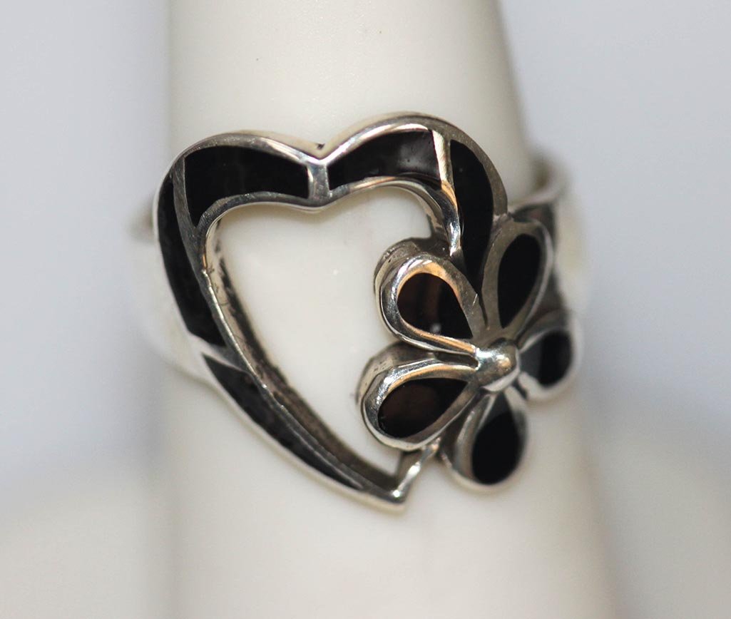 BLACK ONEX HEART .925 STERLING SILVER RING