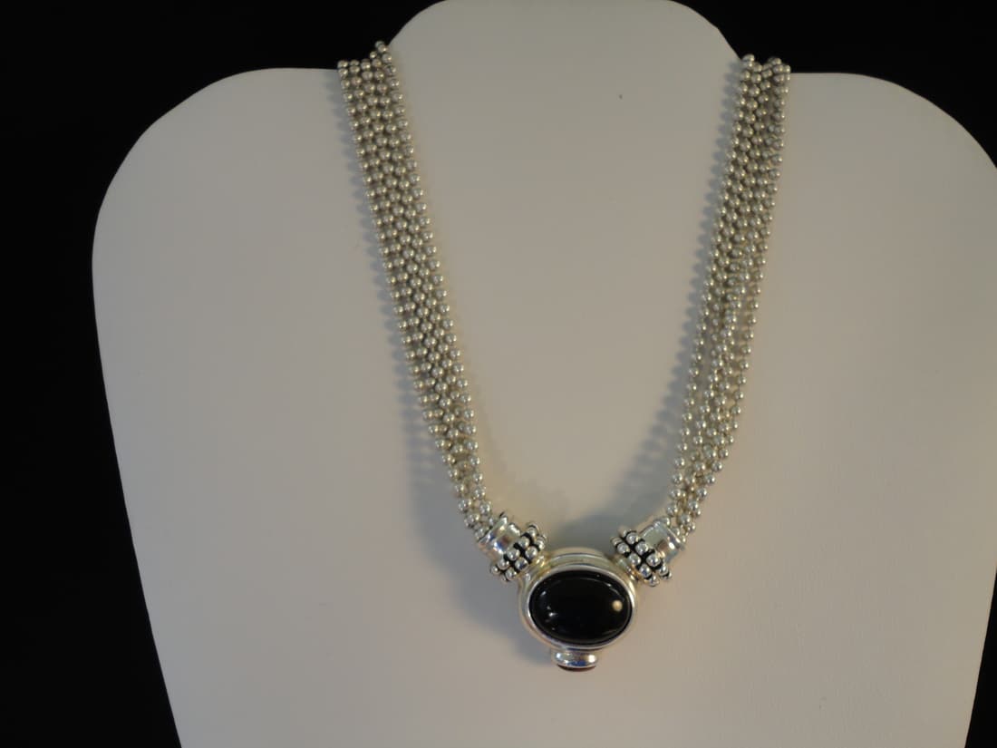 Joseph Esposito ESPO Sig 925 Sterling Black Onyx & Amber Necklace and Oval Black Onyx Cabochon