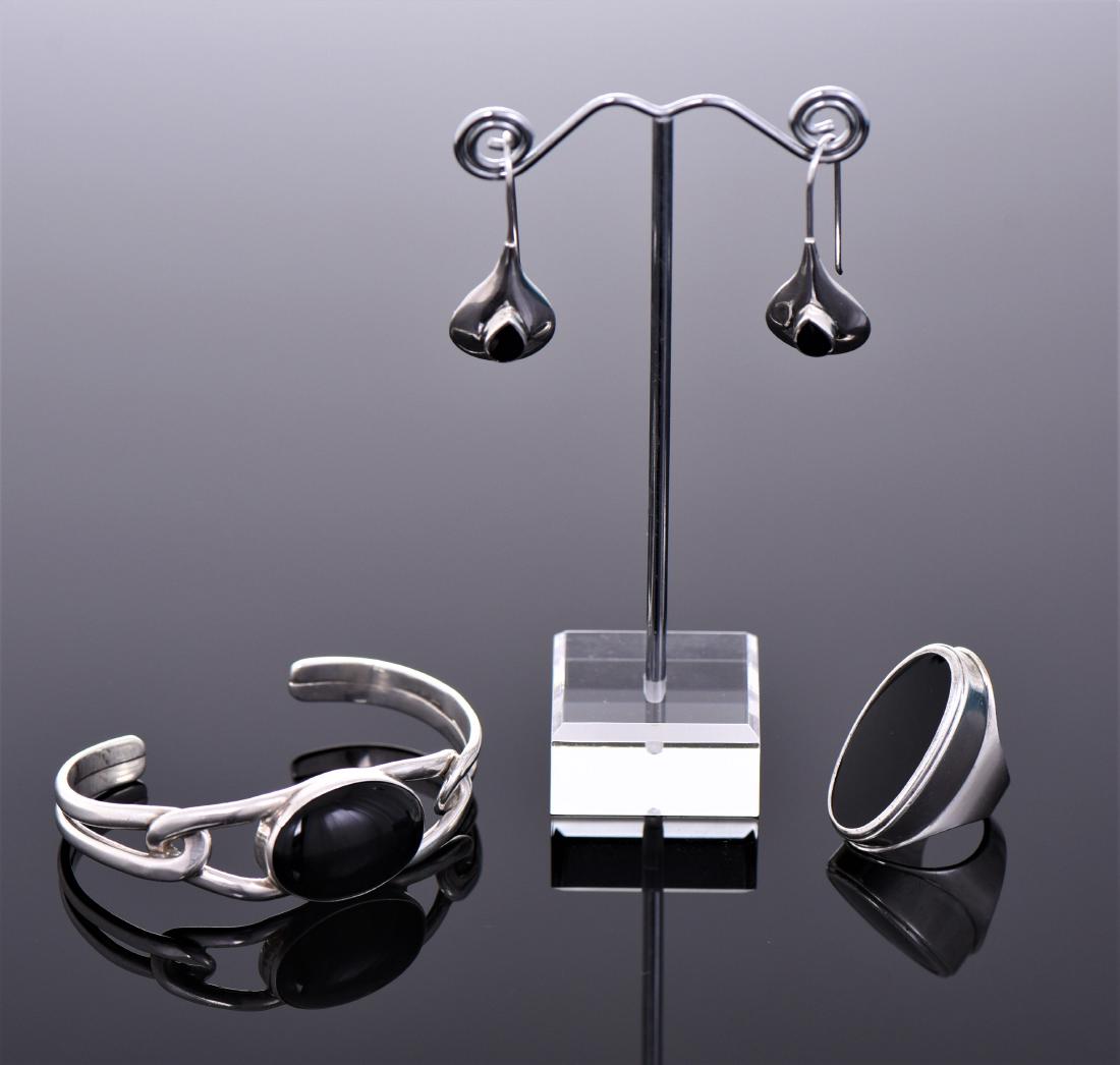 Black Onyx Sterling Silver Cuff Bracelet, Ring, An