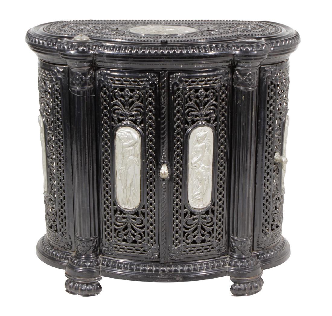 1800s Antique Firewood Coal Wood Repousse Box Brass PanelsAn American Cast Iron Parlor StoveMar 15, 202619thC Boulle Cabinet with White Marble Top5 days LeftY A CEYLONESE CARVED EBONY AND EBONISED BOX, BY DON ANDRIS COLOMBO, MID 19TH CENTURYMar 25, 2026Vintage 1880 Brittany Style Chestnut ArmoireMar 21, 2026American Renaissance Revival Inlaid Ebony Cabinet5 days LeftNapoleon III Ebonized Meuble d'Appui CabinetMar 19, 2026JOHNSON GEER & COX DOUBLE COLUMN PARLOR STOVE WITH DOLPHIN COLUMNS, TROY NY 52" X 31 1/2" X 19"Mar 15, 2026Chinese Stacked Black Lacquer with Gilt Chest, Crescent Shape 1970, H 7.5" W 21" Depth 10.5"Mar 19, 2026Tramp Art Diminutive Two-Part CabinetMar 11, 2026Repousse Brass Covered Three-Drawer Chest5 days LeftWhoopi Goldberg | Regina Music Box and 26 Metal DiscsMar 11, 2026CHINESE GLASS TOP DISPLAY CABINET3 days LeftNeoclassical Ebonized and Gilt Wood Urn TableMar 22, 2026A SMALL WILLIAM & MARY BLACK LACQUER AND GILT CHINOISERIE DECORATED CABINET, CIRCA 1690Mar 24, 2026AN INDIAN BLACK LACQUER AND GILT MINIATURE CHEST ON STAND, BAREILLY, 19TH CENTURYMar 25, 2026