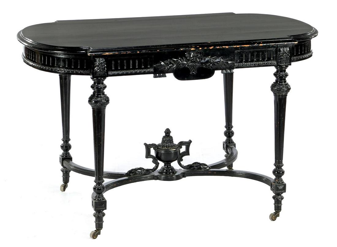 Ebonized Marble Top Coffee Table / Cocktail Table On Wheels manner of JansenMaison Jansen Louis XVI Dining Table, Conference, Ebony, Bronze, French, 1930sFrench Empire Ebonized Wood and Boulle Inlaid Desk, 1840, H 29.75" W 53" Depth 29.75"13 hrs LeftNoir Claudio Dining Table Hand-Rubbed Black 99 x 54 Inches2 days LeftBLACK LACQUERED BRASS INLAY SALON TABLE13 hrs LeftElegant Venetian Console Table with Marble Top and Hand Painted Floral Design1 day LeftFrench Louis XVI Style Mahogany Console Table With Marble Top Model 3430-8243 days LeftAn Anglo Indian ebony and amboyna sofa table, possibly Ceylon, circa 18207 days LeftCUSTOM PAINTED OVAL COFFEE TABLE4 days LeftMaitland Smith Georgian Style Occasional Table with Leather TopFeb 28, 2026Chinese Nesting TablesAN EBONIZED WOOD AND GILTWOOD DOUBLE PEDESTAL DINING ROOM TABLE IN THE MANNER OF JAMES MONT C7 days LeftJonathan Charles Inlaid Wood Console Table with DrawerFeb 28, 2026ITALIAN ROCOCO STYLE MARQUETRY INLAID & PARCEL-GILT TABLE4 days LeftFRENCH MARBLE-TOP PAINTED CAST IRON BISTRO TABLE3 days LeftAntique Georgian Style Carved And Floral Inlaid Games TableFeb 26, 2026