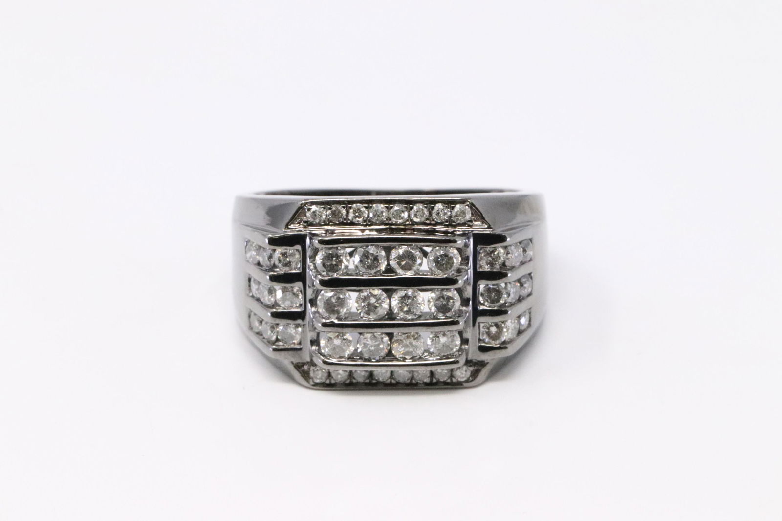 SoldBlack Rhodium Diamond RingMen's Black Rhoudium Diamond Ring. Ring has a total of 139 Round Diamonds. Diamonds weight approx: 1.00cttw. Ring size: 10.00. Total weight: 7.63 grams. #AYSee Sold Price