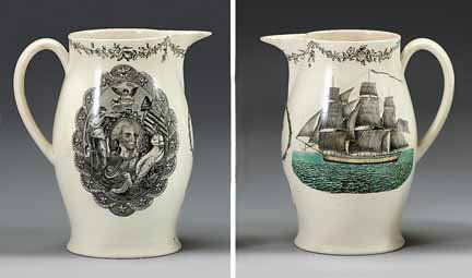 Black transfer-printed and polychromed creamware