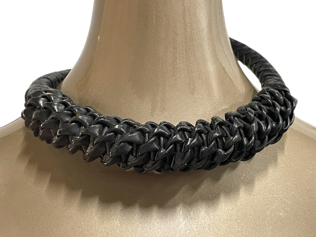 BLACK WOVEN LEATHER STATEMENT NECKLACE
