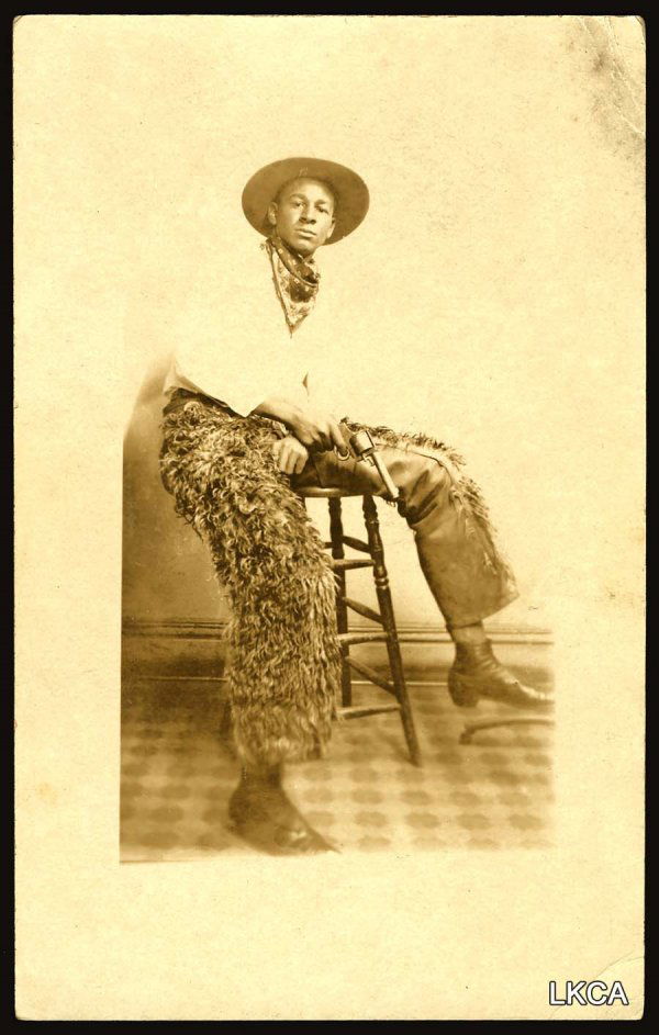 Black Cowboy, Wooly Chaps Ad message on ba