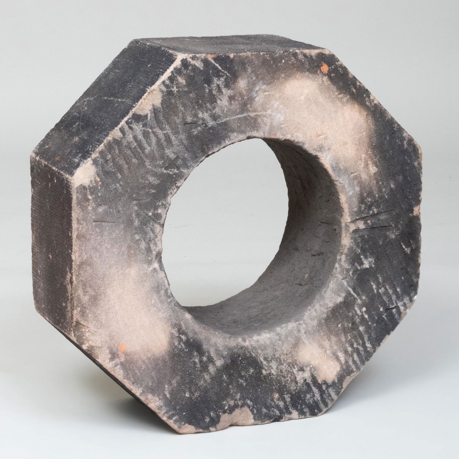 Blackened Stone Octagonal-Shaped Sculpture