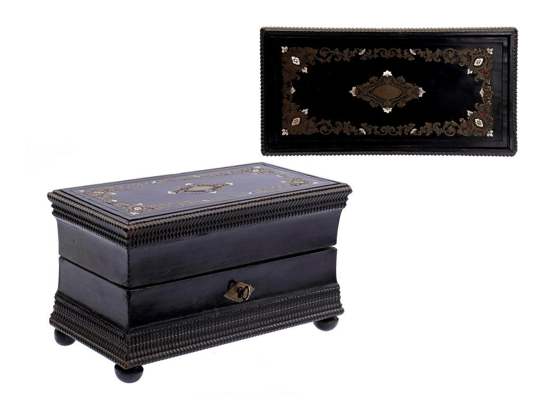 Lot of 2 Antique Boxes2 days Left(2) JAPANESE LACQUERED MOTHER-OF-PEARL INLAID TABLE BOXESFeb 21, 2026(4) COLLECTION OF CARVED WOOD, INLAID & LEATHER-CLAD TABLE BOXESFeb 21, 2026French Mother-of-Pearl Inlaid Rosewood Box2 days LeftMarquetry and Mother of Pearl BoxesFeb 25, 2026American Folk Art Wood Boxes, 19th C., 2Mar 26, 2026TWO WOOD BOXES, ONE WITH INLAY.Feb 19, 2026Japanese Masonic Motif Mother-of-Pearl Lacquer Box153 Lots AwayMeiji Period Fine Japanese Black Lacquer-Work Wooden Jewelry Box5 days LeftTwo Asian Wood BoxesFeb 26, 2026ROSEWOOD DRESSER BOX WITH MOTHER-OF-PEARL INLAY 19th Century Height 4". Width 11". Depth 7.5".Feb 18, 2026Victorian Rosewood Mother-of-Pearl Inlay Humidor2 days LeftA pair of exquisite hand-painted and gilded lacquer boxes from a rare collection.10 hrs LeftEnglish Aesthetic ebonized casket box with brass panelsFeb 27, 2026Antique Chinese Black Lacquer And Mother Of Pearl Inlaid Jewelry Box5 days LeftAn antique Oriental florally decorated carved wooden boxFeb 24, 2026