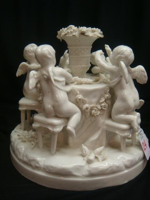 Blanc de Chine Cherubs Around Table Figurine: