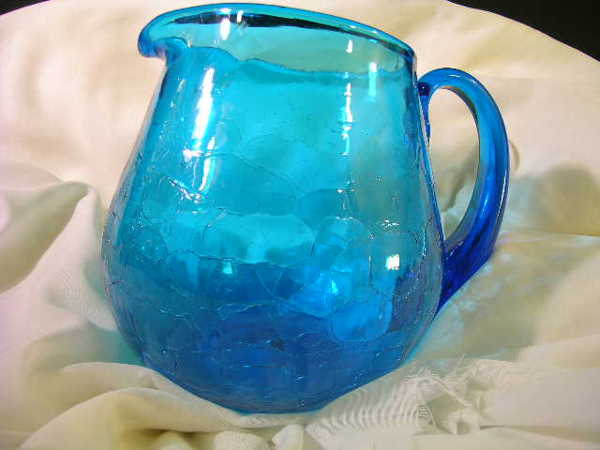 BLENKO ART GLASS BLUE CRACKLE PATTERN PITCHER