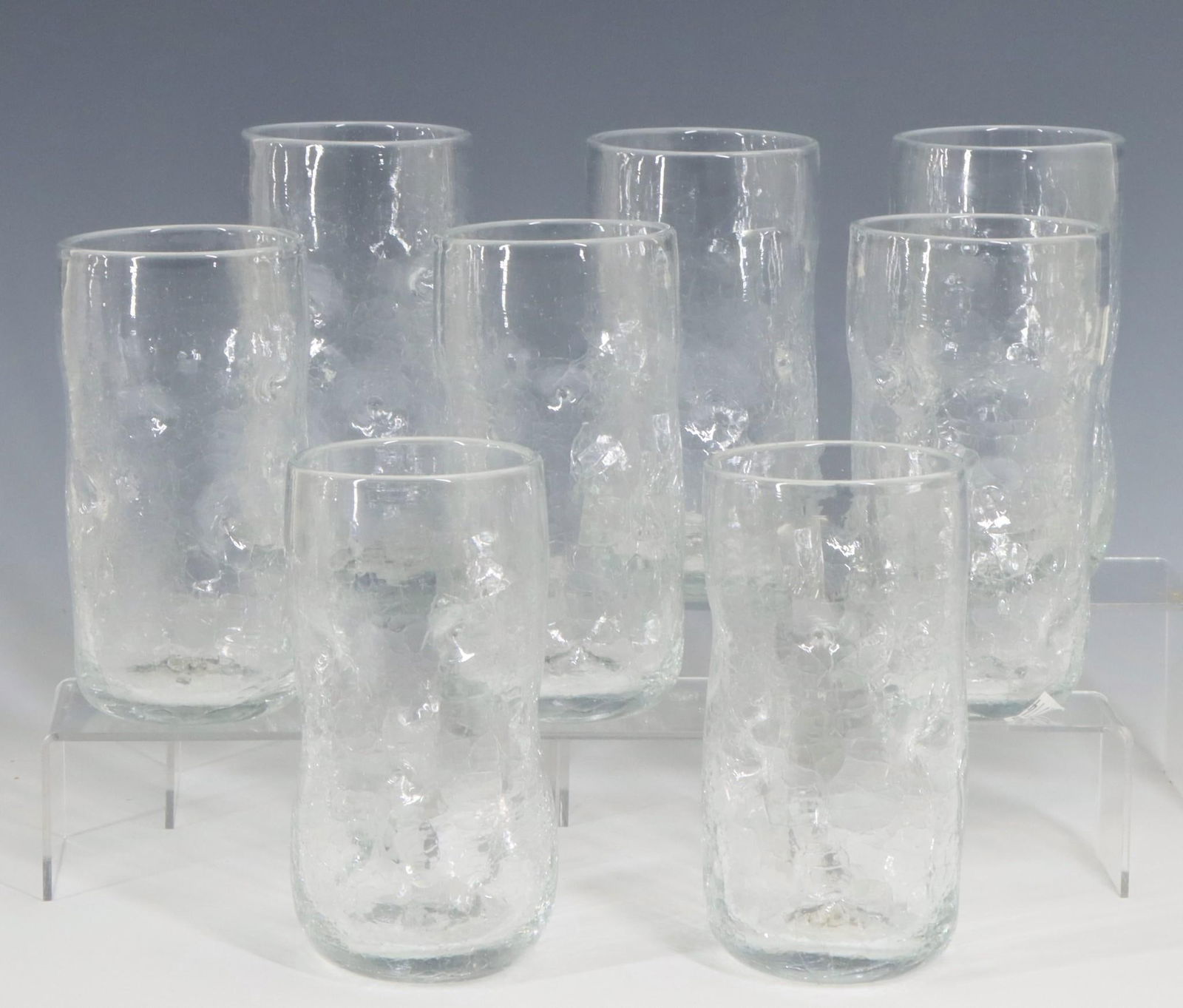 SoldBlenko Crackle Glass Tumblers(Q) Vintage set of yellow crackle glass cups. Set of 11. 2-3/4" Diameter x 5-1/2" Tall. Shipping available call (717) 576-0778 for a quote.See Sold Price