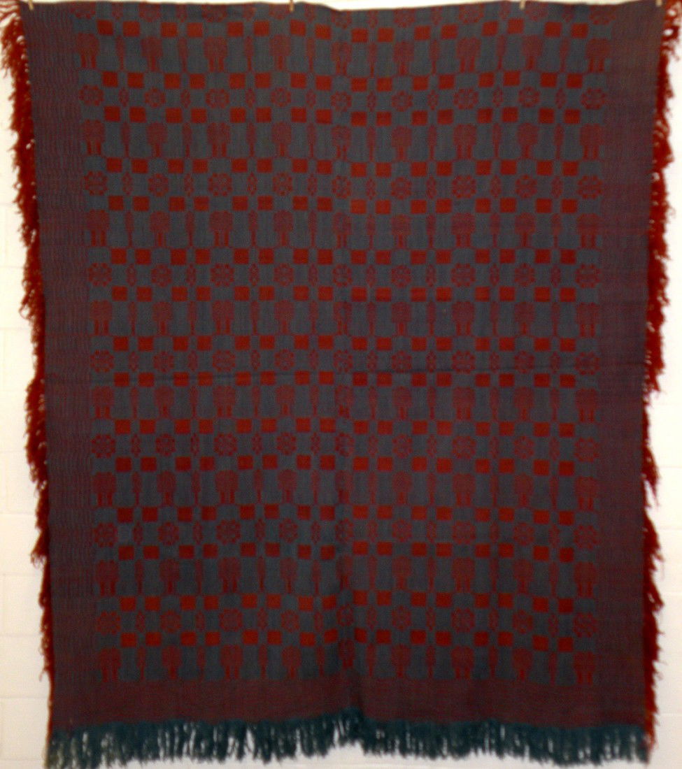 Blue & red wool coverlet