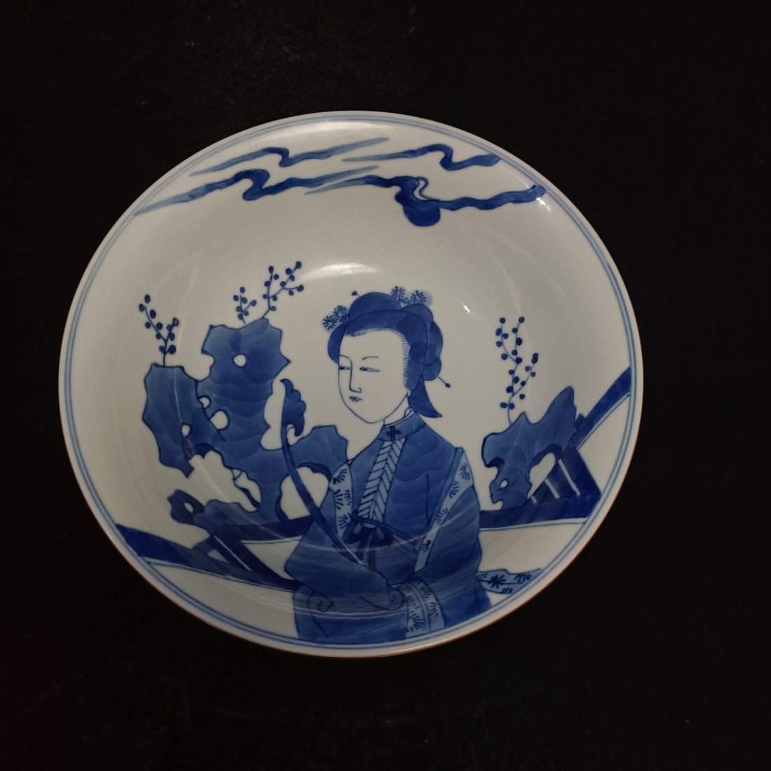 Blue and white bowl with figure pattern