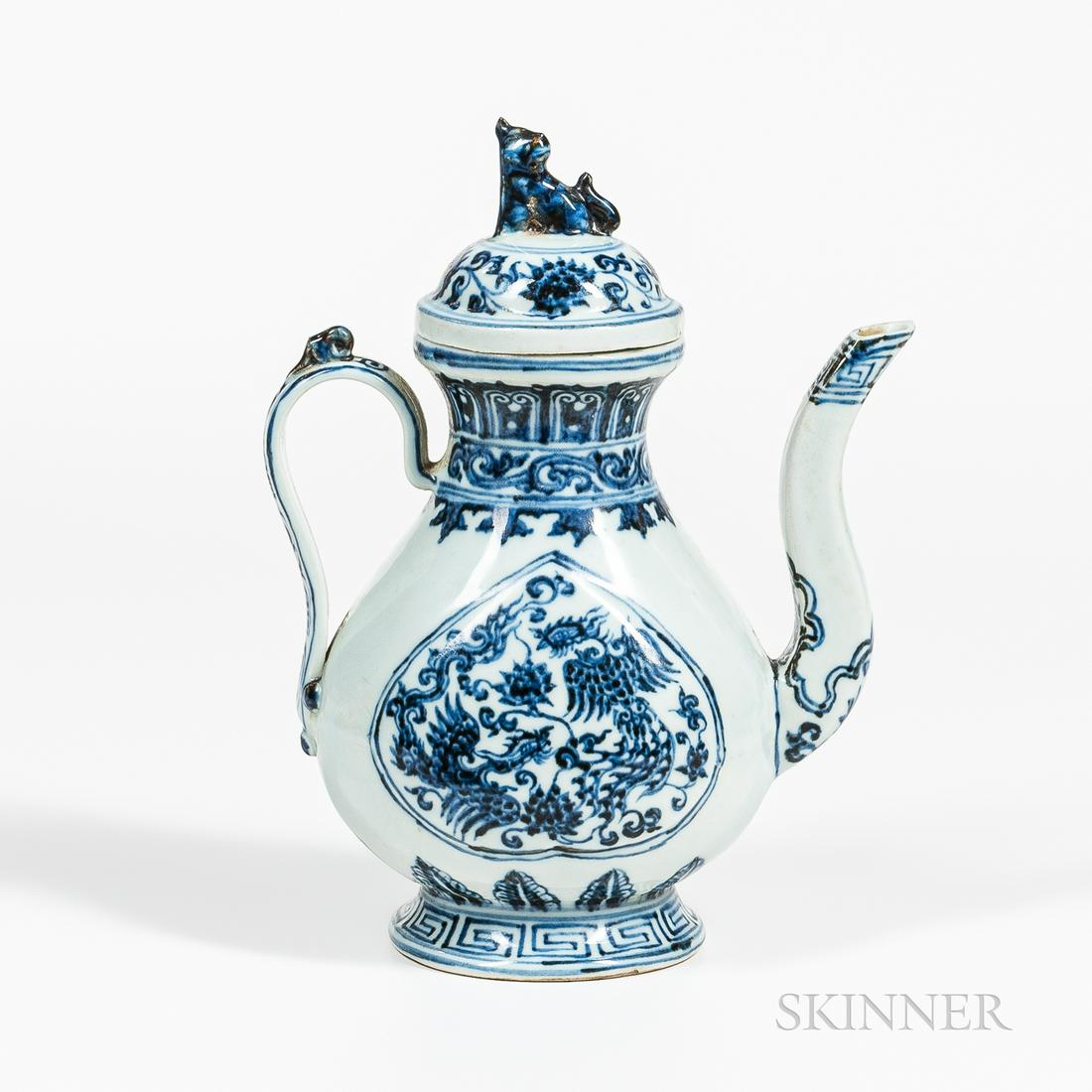 A BLUE AND WHITE PORCELAIN WATER POT AND COVER WITH A FIGURAL SCENE, QING DYNASTYMar 11, 2026Chinese Blue Glazed Phoenix Moon FlaskFeb 28, 2026An Exquisite Blue and White Painted Gold Phoenix Pattern Lotus Pattern Ewer3 days LeftA BLUE AND WHITE TWO-HANDLED JAR AND COVER Kangxi (2)An Exquisite Ji Blue Glazed Dragon Pattern EwerMar 14, 2026A Chinese Kangxi Blue and White Porcelain Barrel Teapot with Scholar MotifsMar 04, 2026A Chinese Kangxi Blue and White Porcelain Teapot with Scholar MotifsMar 04, 2026A Fine Ming Xuande Blue and White Ewer with Cloud and Dragon DesignMar 08, 2026LARGE CHINESE BLUE & WHITE PORCELAIN WATER EWER & COVER, 32"H5 hrs LeftA melon-shaped ewer with blue and white underglaze blue and polychrome decoration, featuring dragon16 hrs LeftBlue - and - white Ewer with Phoenix Amidst Floral PatternsMar 08, 2026A blue and white consecrated dragon pattern pot of the Ming DynastyMar 22, 2026A BLUE AND WHITE 'IMMORTALS' EWER ChongzhenAn Exquisite Blue and White Lotus,Auspicious Cloud and Phoenix Pattern EwerMar 11, 2026Ming Dynasty Zhengde blue and white floral Arabic porcelain ewer4 days LeftAn Exquisite Blue and White Lotus and Phoenix Pattern EwerMar 11, 2026