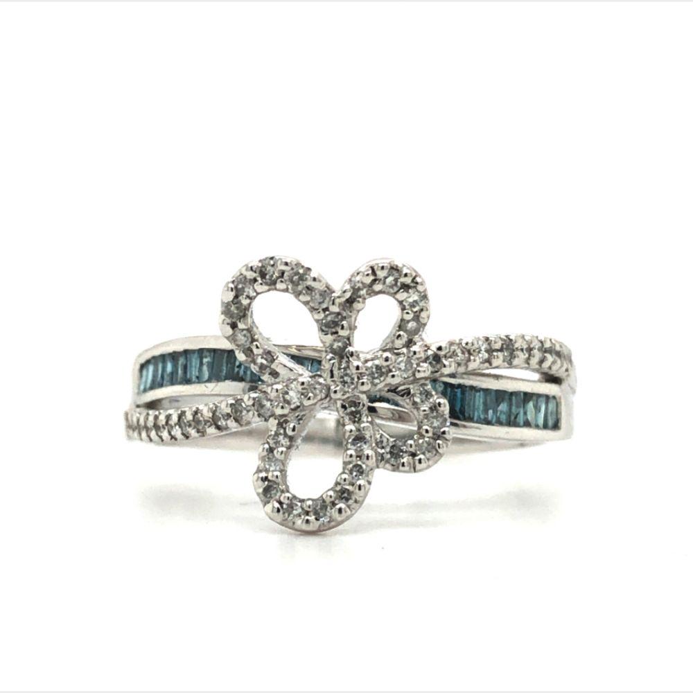 Blue and White Diamond Butterfly Ring
