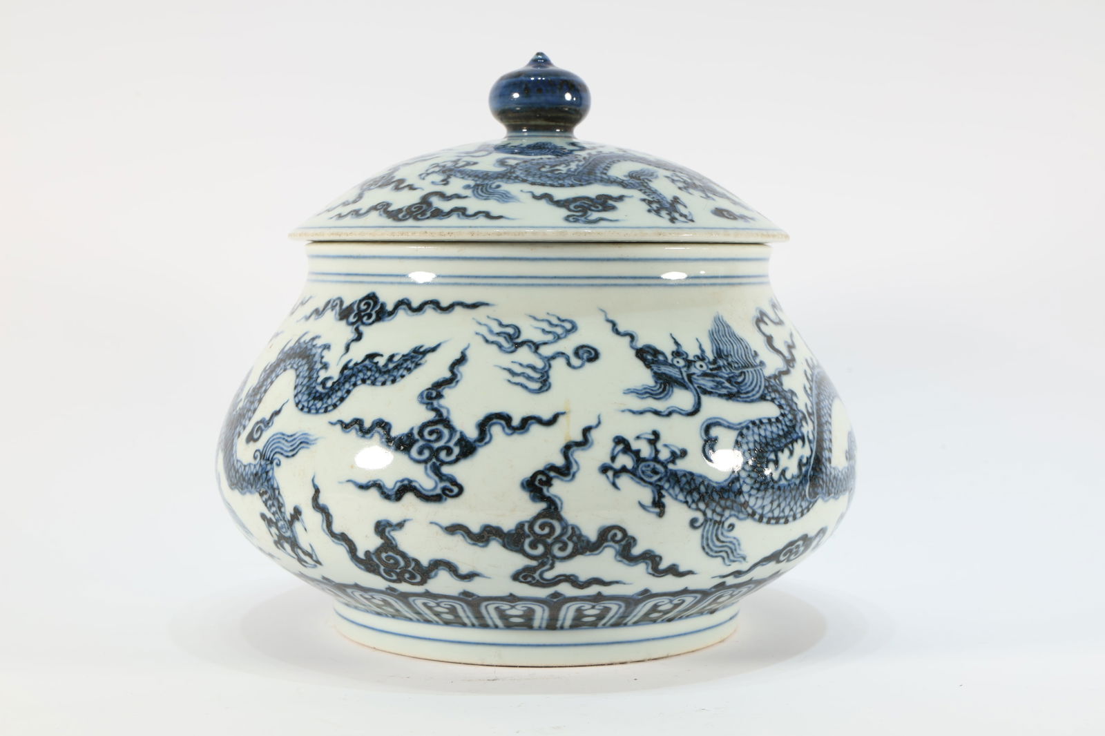 Blue and White Dragon and Cloud Pattern Porcelain Pot