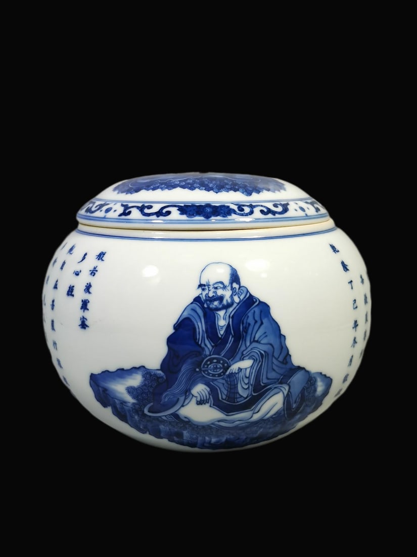 Blue and White Figures Pattern Jar?