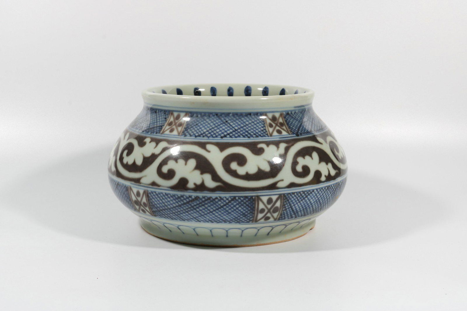 Blue and white glazed red flower geometric pattern large jar