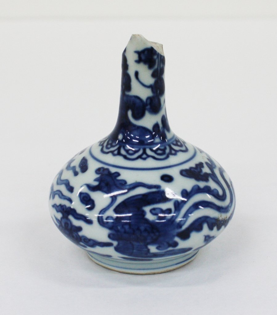 Chinese blue and white kendi water vase" mark on base. Height 8 in. Width 7 1/2 in."Find Treasure4.1(15)$2004 days Left