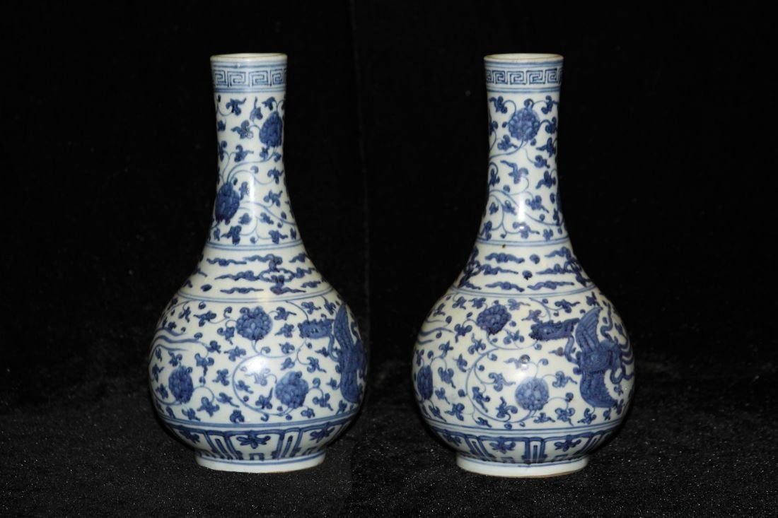 A pair of rare blue and white porcelain bottles containing Cordyceps sinensis and aged white tea.FCL4.2(3)$60011 hrs Left