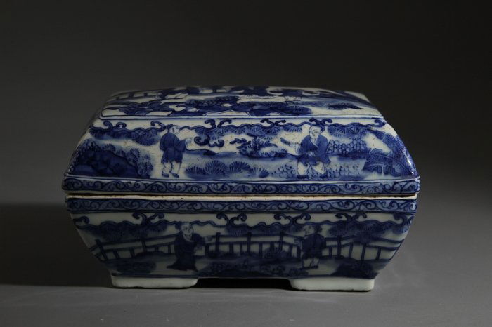 Blue & White Porcelain Rectangle Lidded Container with