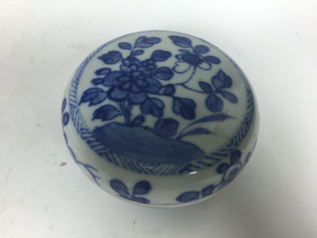 A Ming Dynasty Xuande period blue and white porcelain box with lotus and fruit design.CJ Auction$60014 hrs Left