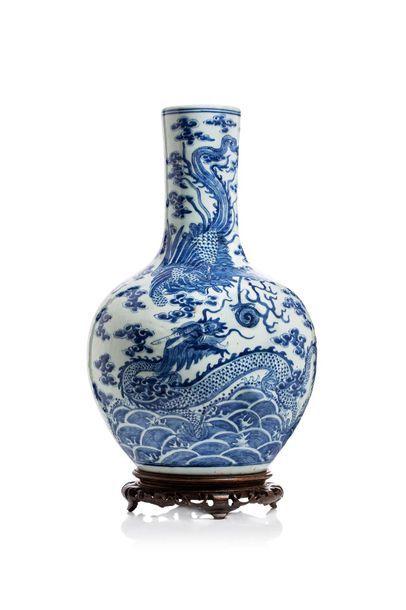 Blue and white vase with dragon and phoenix patterns
