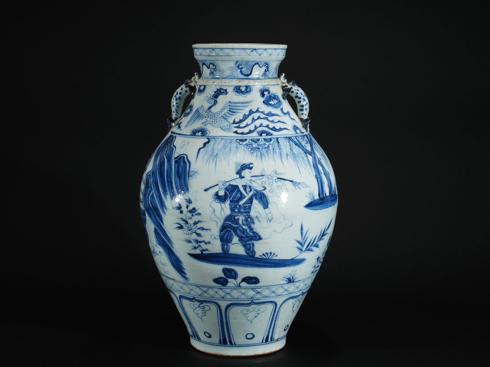 Blue and white vase with human figures