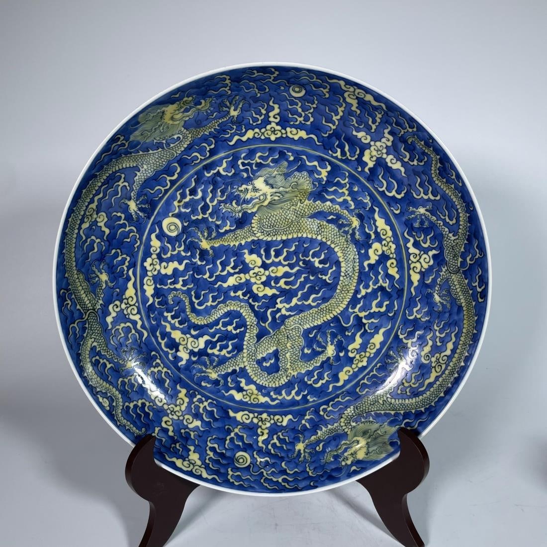 BLUE AND WHITE YELLOW DRAGON PLATE