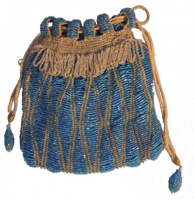 Blue Beaded Bag with Blue Beaded Bobbles