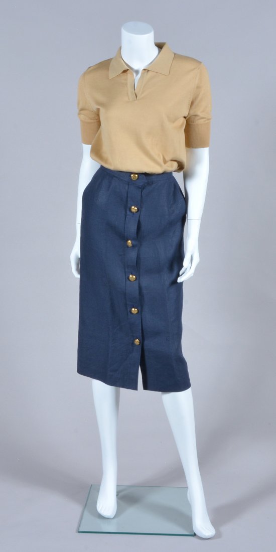 Navy Cotton Skirt and Jacket Ensemble by CHANEL for Men