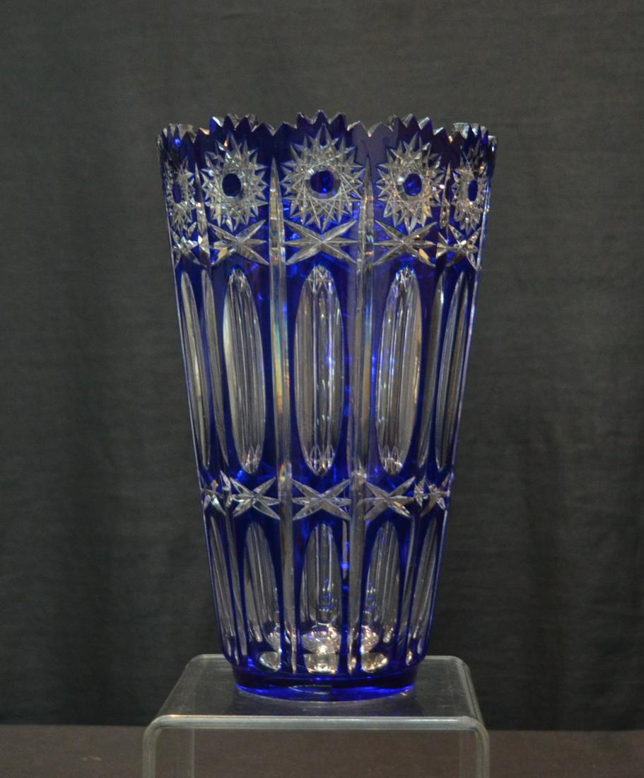 BLUE CUT TO CLEAR CRYSTAL VASE