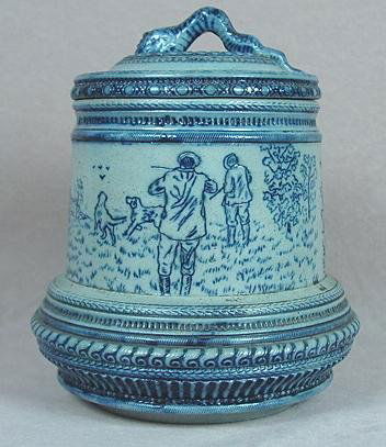 BLUE DECORATED STONEWARE HUMIDOR