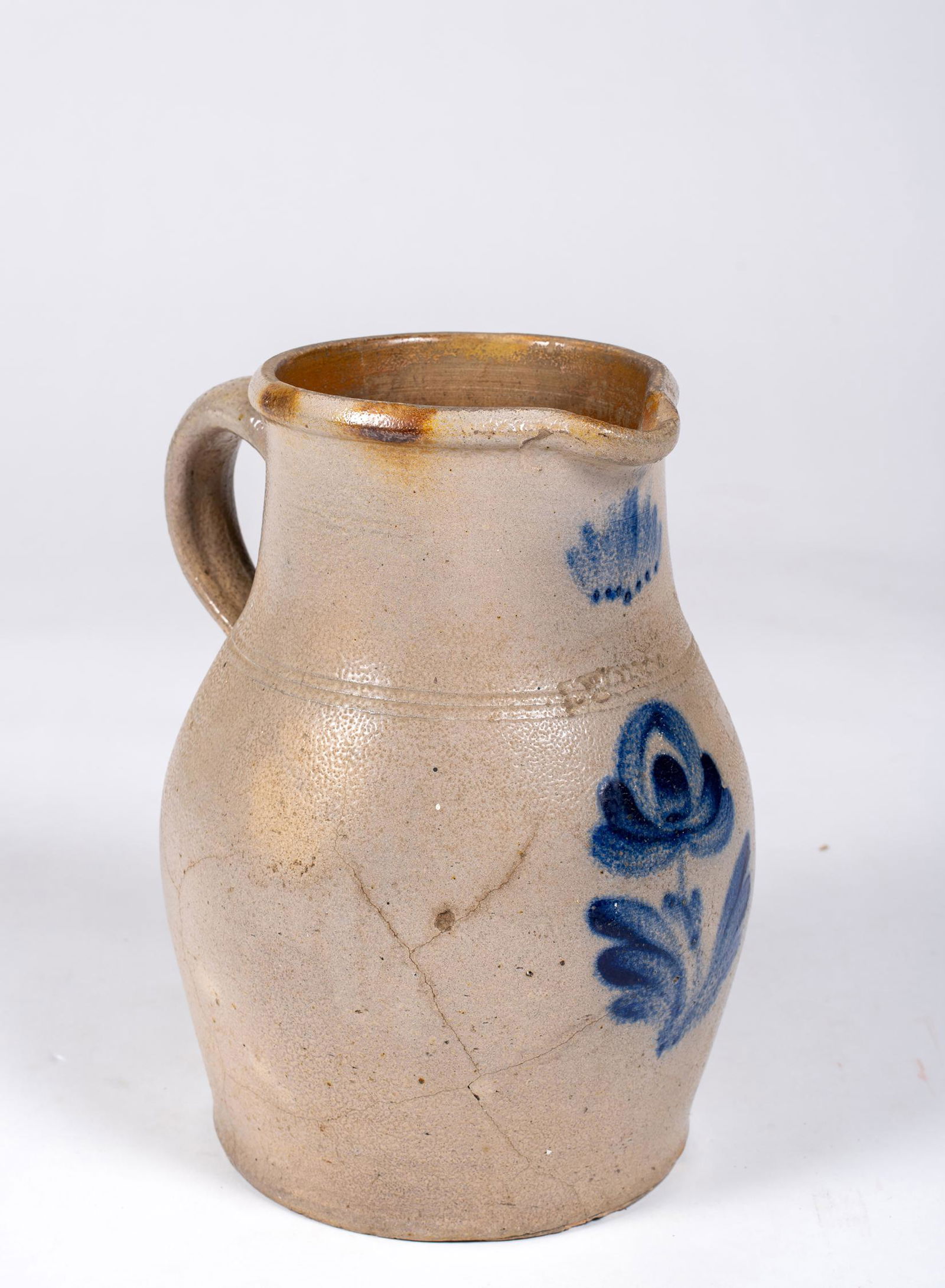 Blue Flower Decorated 19thC Stoneware Pitcher