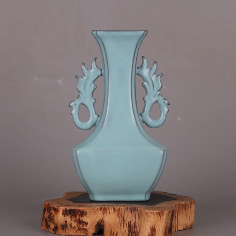 BLUE GLAZED PHOENIX EAR FLOWER PORCELAIN VASE