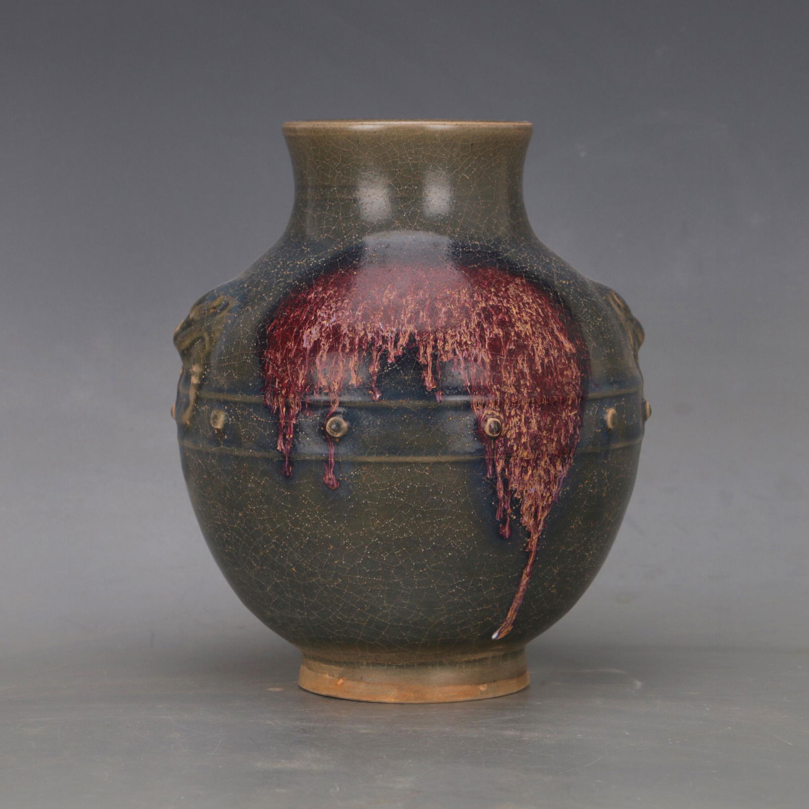 Blue-glazed double-eared lion drum nail jar