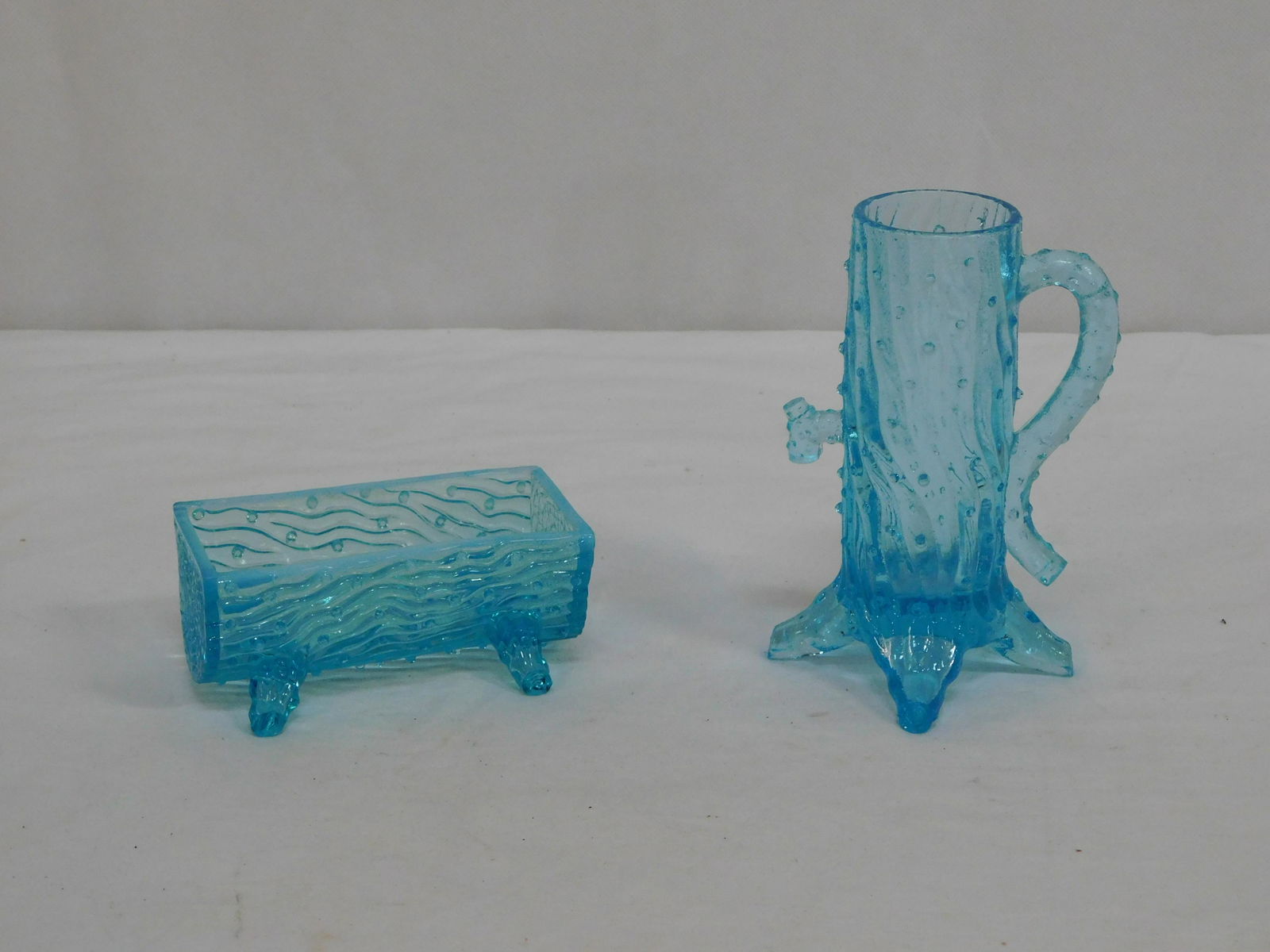 Blue Opalescent Cracker Dish and Well Pump