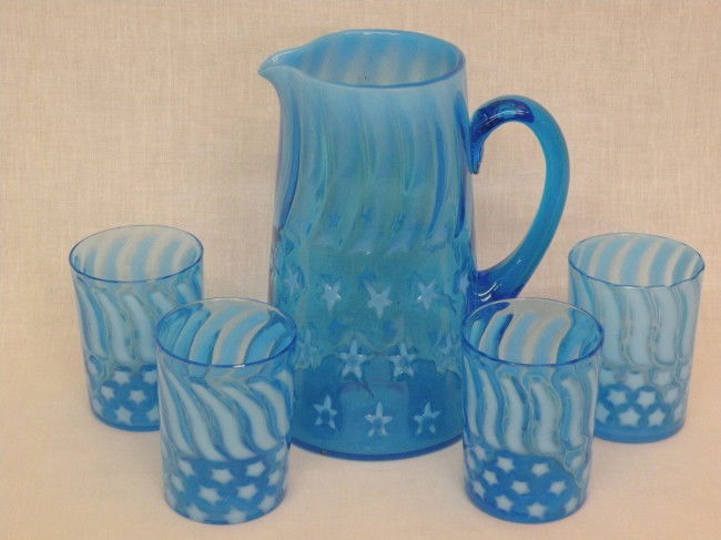 Blue opalescent glass lemonade set