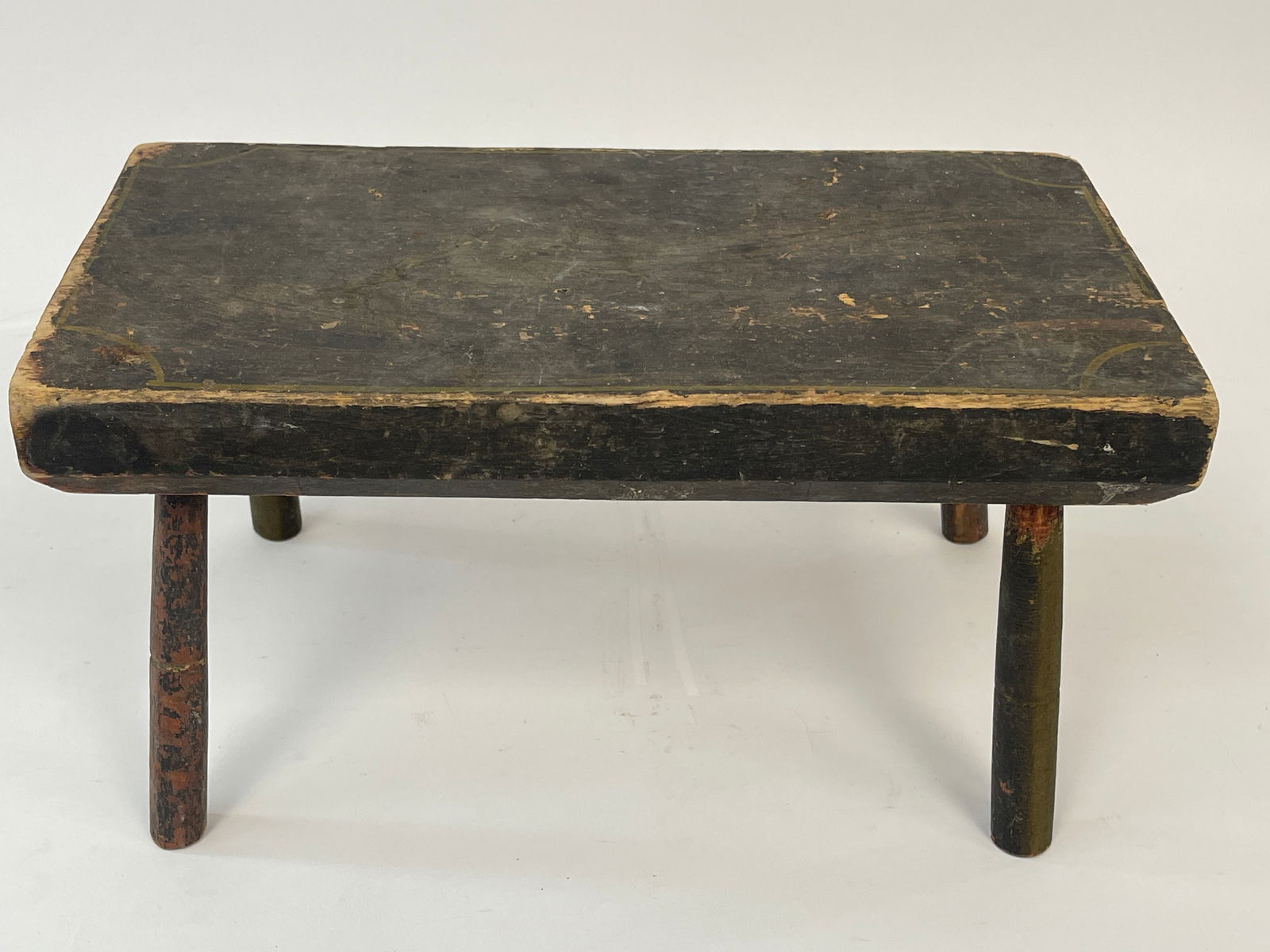 SoldEARLY WINDSOR PAINTED (RED) CRICKET STOOL, 18/19TH C.EARLY WINDSOR PAINTED (RED) CRICKET STOOL, 18/19TH C., H. 7" L. 12" (SIGNED?)See Sold Price
