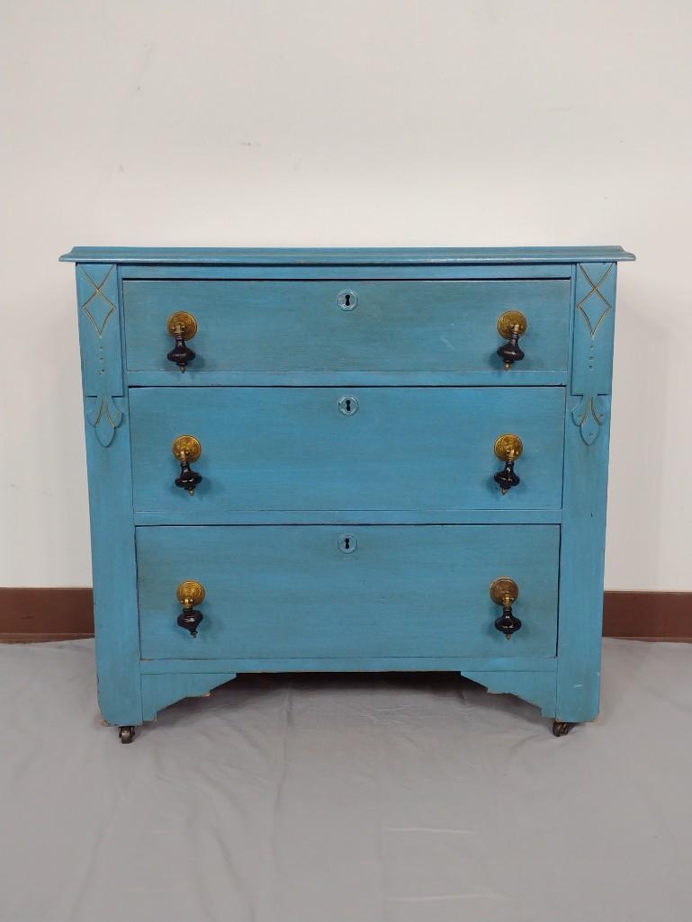 Painted Large Three Drawer Chest on Bun Feet