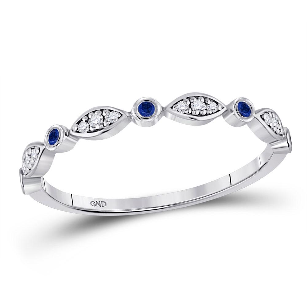 Blue Sapphire Diamond Stackable Band Ring 1/10 Cttw