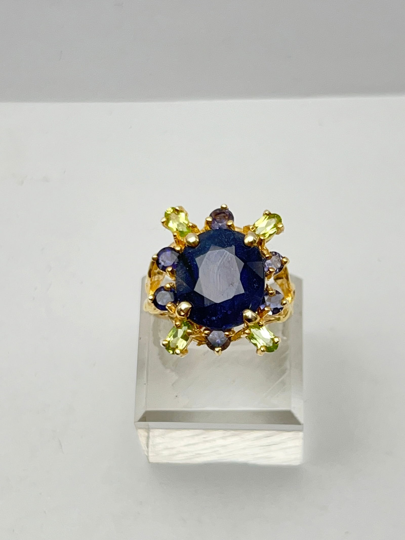 6+Cts Blue Sapphire, Peridot, Tanzanite 14K Ring - Sz 9 , 14K Gold over Sterling