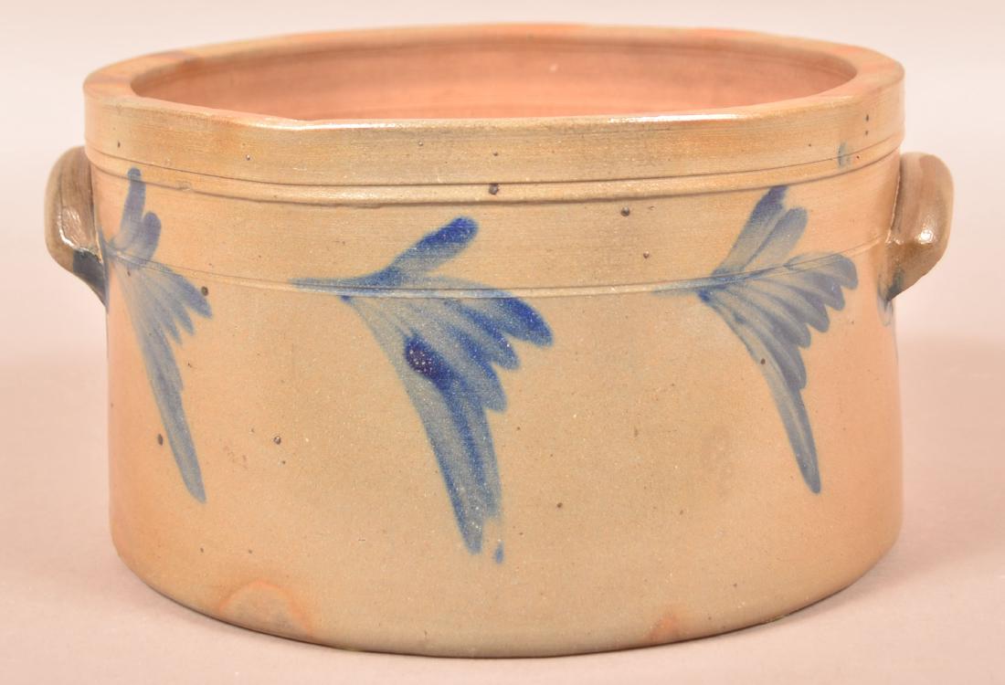 Blue Slip Decorated Stoneware Cake Crock.