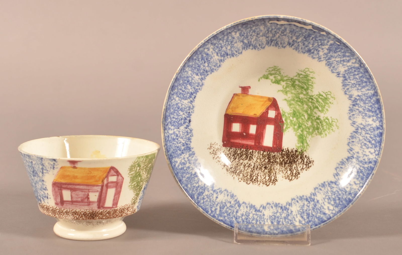 Blue Spatter Schoolhouse Pattern Cup & Saucer.
