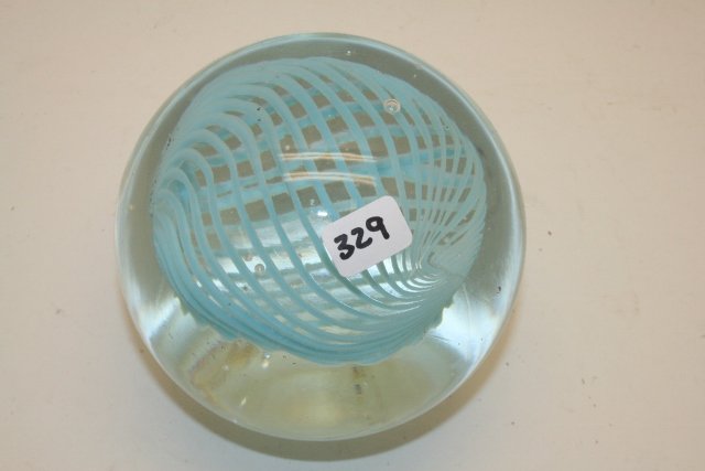 Unmarked Blue Bubble Egg Shape Glass Paperweight