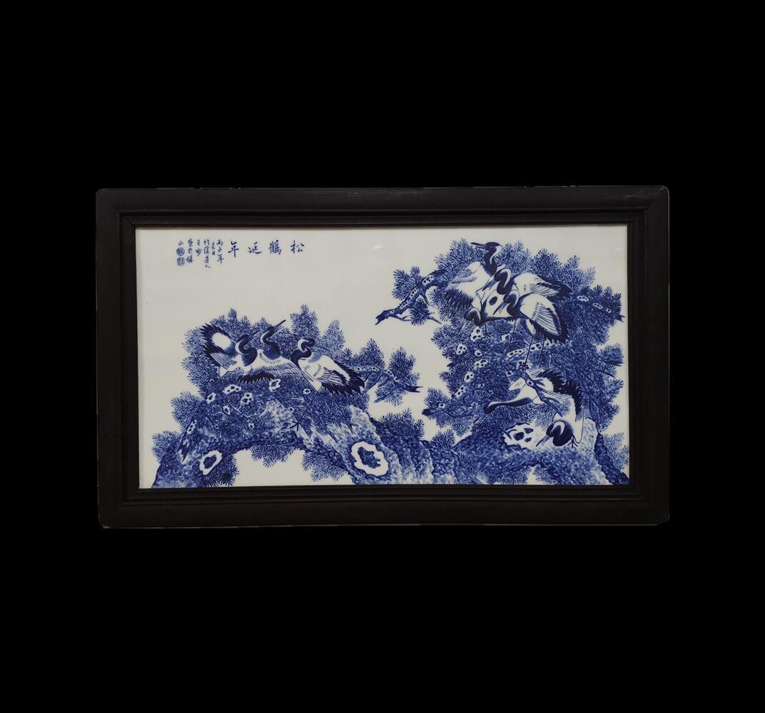 BLUE WHITE LONGEVITY PLAQUE BY WANG BU