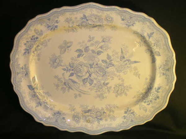 BLUE WHITE TRANSFERWARE ASIATIC PHEASANTS PLATTER