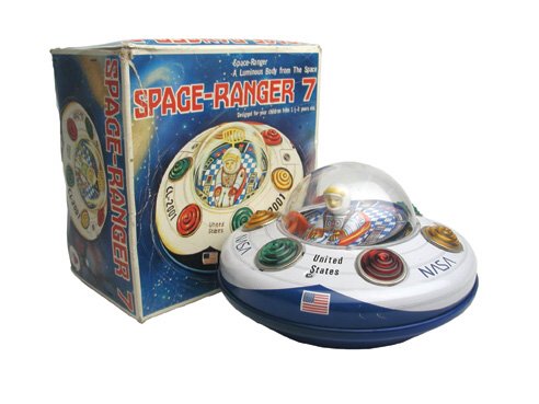 Sold4PC Japanese Masudaya Nomura Tin Space ToysJapan,20th Century Group includes a Masudaya UFOX05, Masudaya Space Ranger No. 3, Nomura Space Ship Delta Bird, and an original store display of Ichimura flying saucer tin friction toys. Three largerSee Sold Price