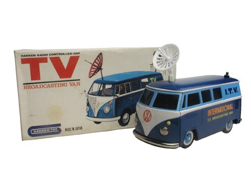 Sold(3) Vintage Tin Litho Television Vans3 pieces. Includes friction Cragstan NBC Television Van (6" long), battery operated Gakken International TV Broadcasting Van (7.5" long), and battery operated Japanese NBC Television Truck. All piecesSee Sold Price