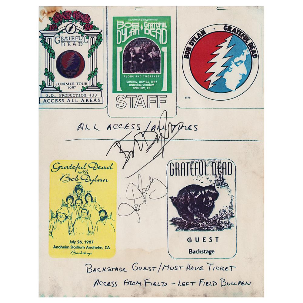 Bob Dylan and Ken Kesey Signed Backstage Pass Sheet